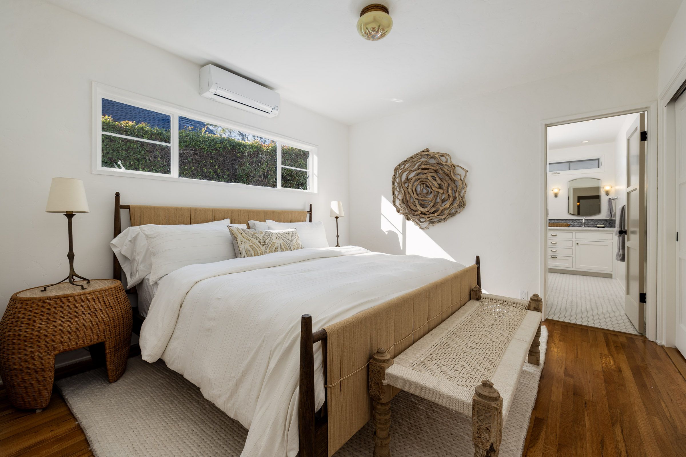 The single-level residence offers two bedrooms and two bathrooms, including an updated primary bath with heated floors. A refreshed kitchen honors the cottage’s original spirit while embracing modern comfort, featuring Viking appliances, honed marble countertops, and a seamless blend of form and function. Each improvement has been carefully curated to enhance livability without compromising the home’s authentic charm.